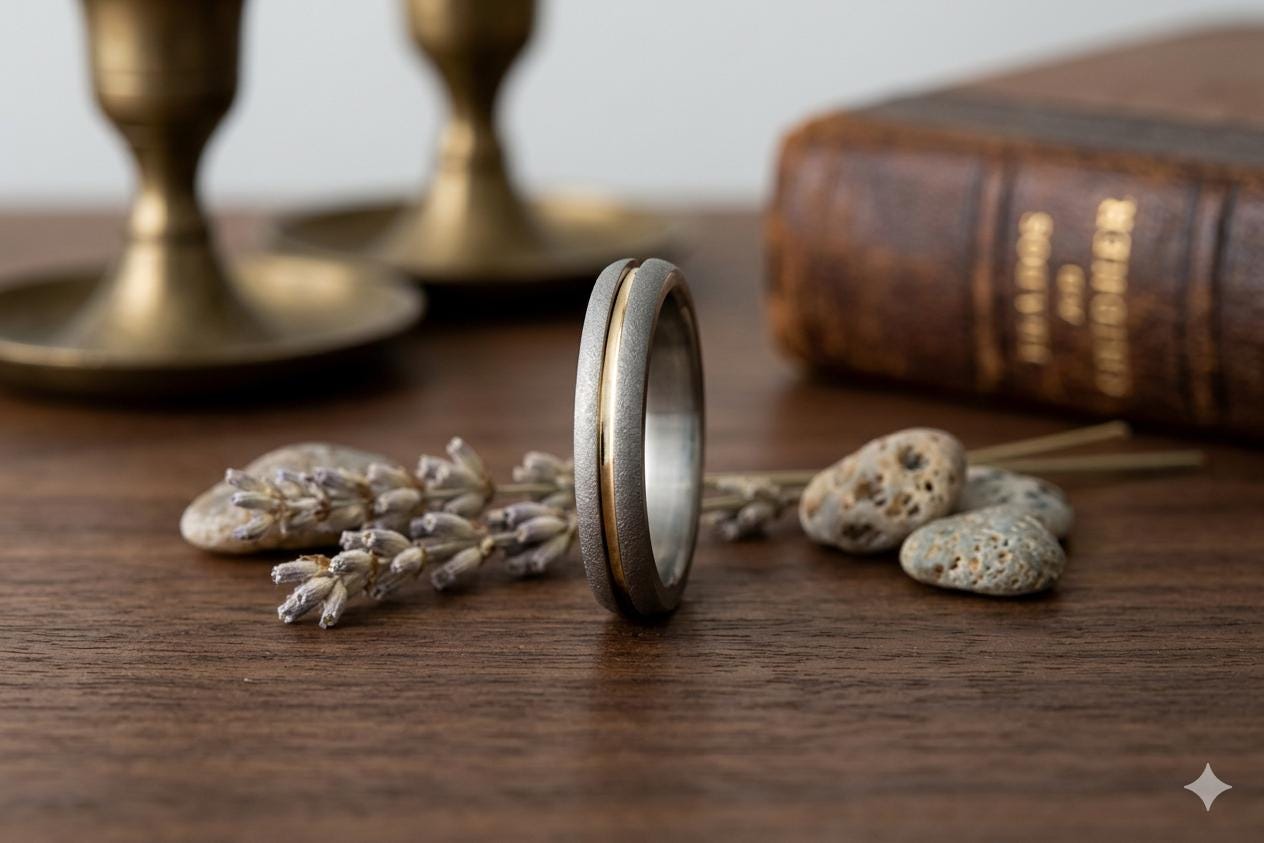 Sandblasted rounded titanium ring with yellow gold 18K inlay.