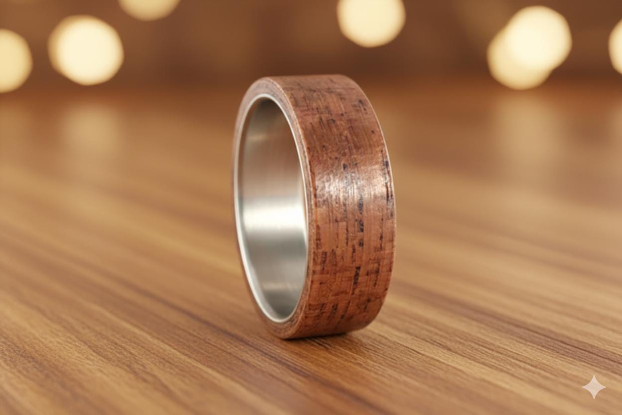Titanium and matte bent cedar wood ring.