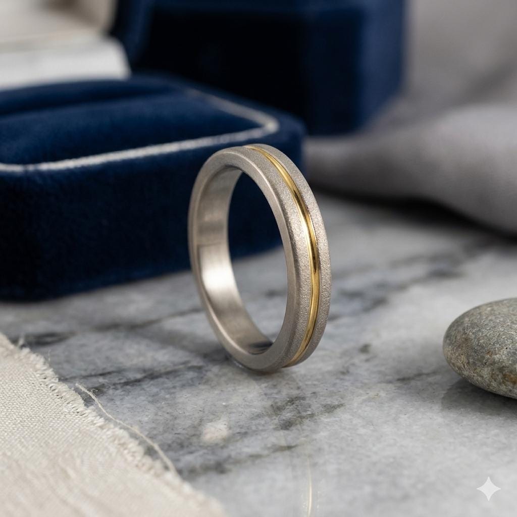 Sandblasted titanium ring with yellow gold 18K inlay.