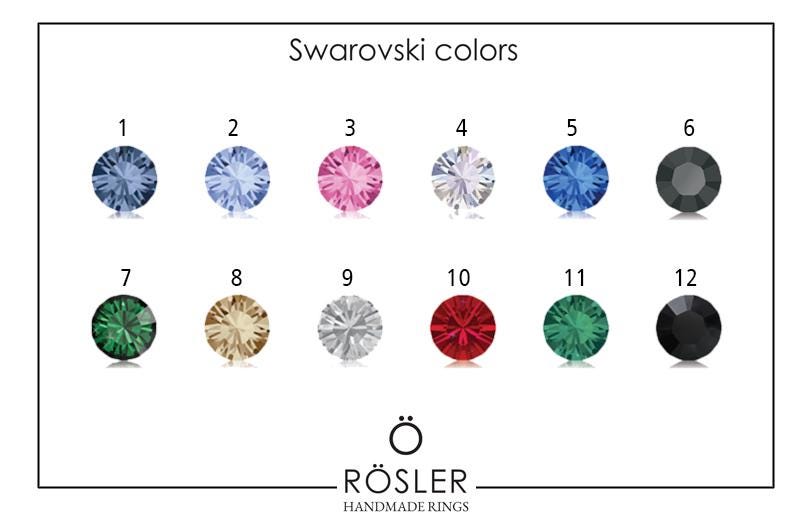 Choose your preferred color for Swarovski crystal out of the list in the last image. Then, at checkout, leave us a message with the number of the color you picked.